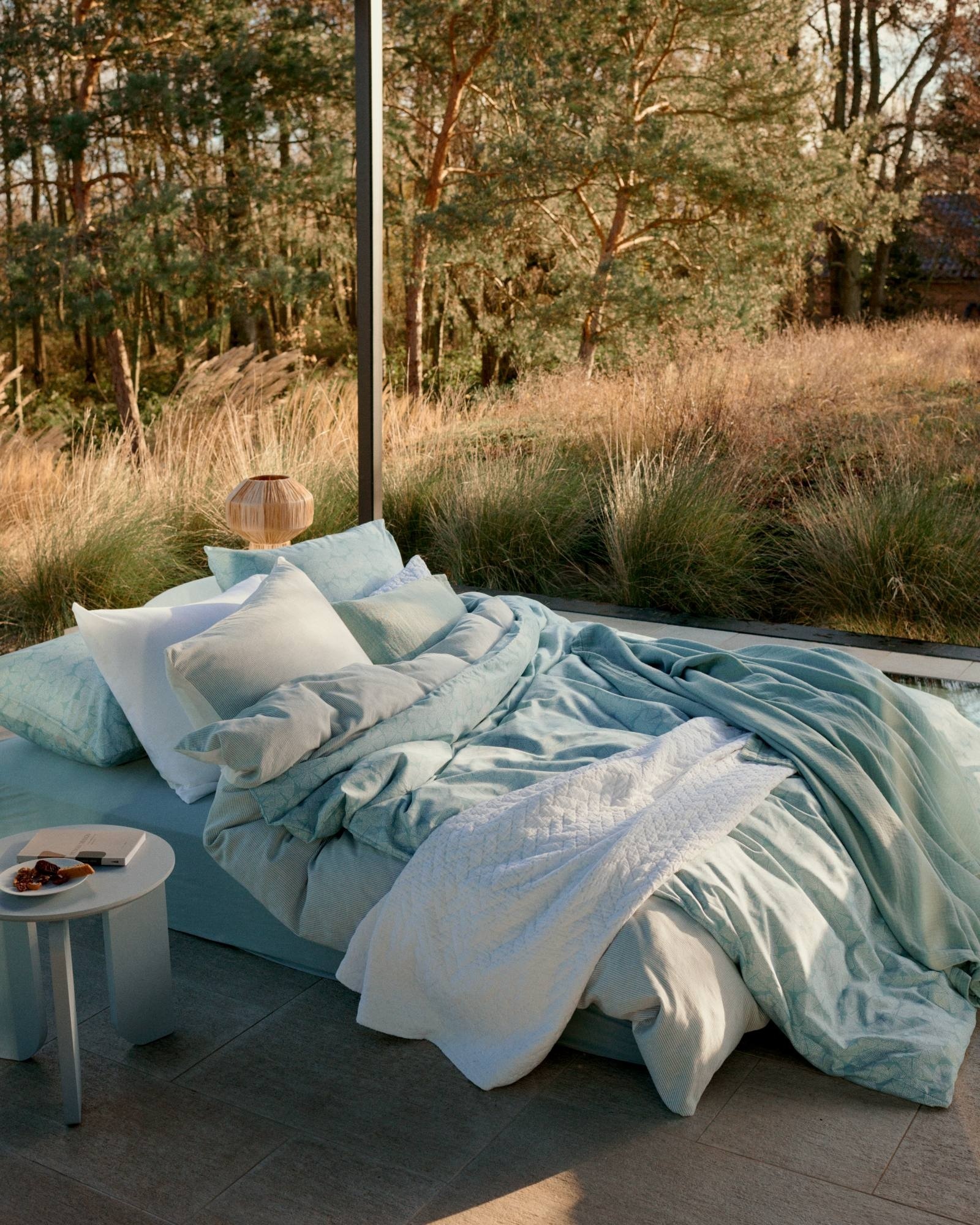 La série Pure 68 est teinte en pièce. Cela signifie que les couvre-lits et les taies d'oreiller sont teints seulement après leur confection, ce qui adoucit à la fois la couleur et la texture. Cette technique de teinture spéciale donne au tissu un aspect élégant et vintage.